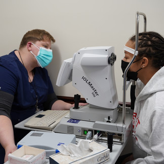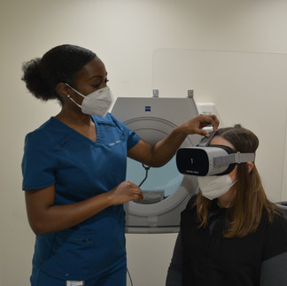 Third year, Lydie Tubene works with Dr. McLaughlin to evaluate new instruments that could help measure peripheral vision using virtual reality. Because of the tool's portability, this new device could also be used as a screening tool on community health screenings or mission trips. They are in the process of validating this new technology for accuracy.